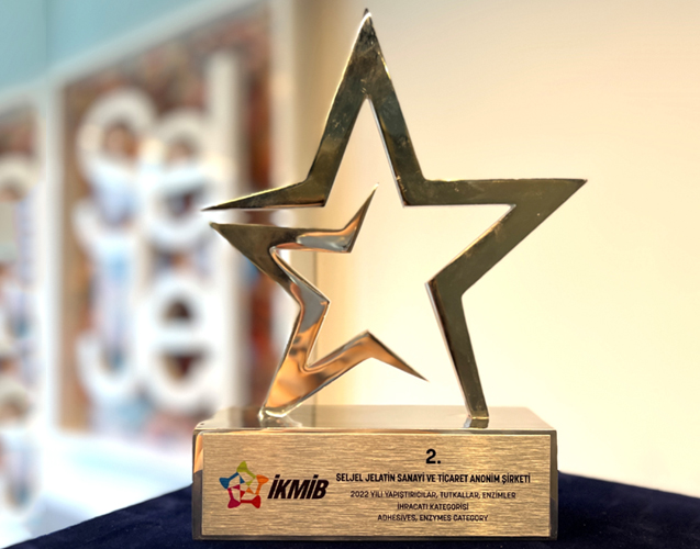 We are thrilled to announce that our company Seljel Jelatin A.Ş. has achieved a remarkable accomplishment by securing the 2nd position in exports in the 'Adhesives, Glues, Enzymes' category among the member companies of Chemicals and Chemical Products Exporters' Association (İKMİB) in Turkey. This outstanding achievement is a testament to the hard work and dedication of our entire team. We extend our heartfelt gratitude to our employees, partners, and valued customers who have contributed to this success. We remain committed to delivering high-quality products and services as we continue to grow and excel in the global market.